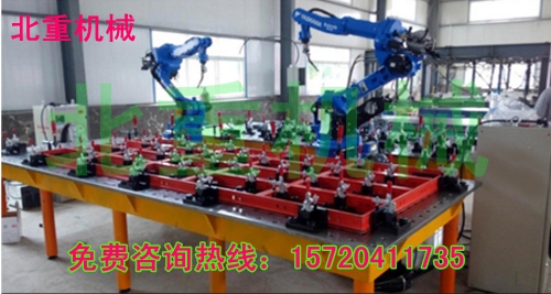 機(jī)器人焊接平臺(tái)的承載能力高,鋼性穩(wěn)定,它的五個(gè)面均加工有規(guī)則的孔,并刻有網(wǎng)線。焊接平臺(tái)可方便地延伸和擴(kuò)展,組合。經(jīng)擴(kuò)展的標(biāo)準(zhǔn)臺(tái)面可模塊化的定位和夾緊直接連接在一起。在安裝、調(diào)整和定位工件過(guò)程將柔性三維組合焊接工裝系統(tǒng)的通用功能展示的淋漓盡致,尤其在了大型工件方面的應(yīng)用上。
