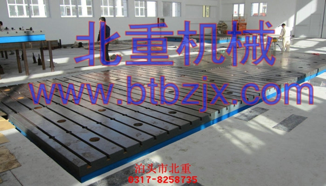 3、鉚焊平臺(tái)(鉚焊平板)的材質(zhì)為高強(qiáng)度鑄鐵HT150-300,任務(wù)面硬度為HB170-350,經(jīng)由兩次人工處置(人工退火六百度-七百度和天然時(shí)效三年)。對(duì)鉚焊平臺(tái)進(jìn)行熱處置的目標(biāo)是削減逐步中的應(yīng)力,消弭平板的局部白口組織,進(jìn)步平板任務(wù)外表的硬度和耐磨性,使精度不變,耐磨功能好。