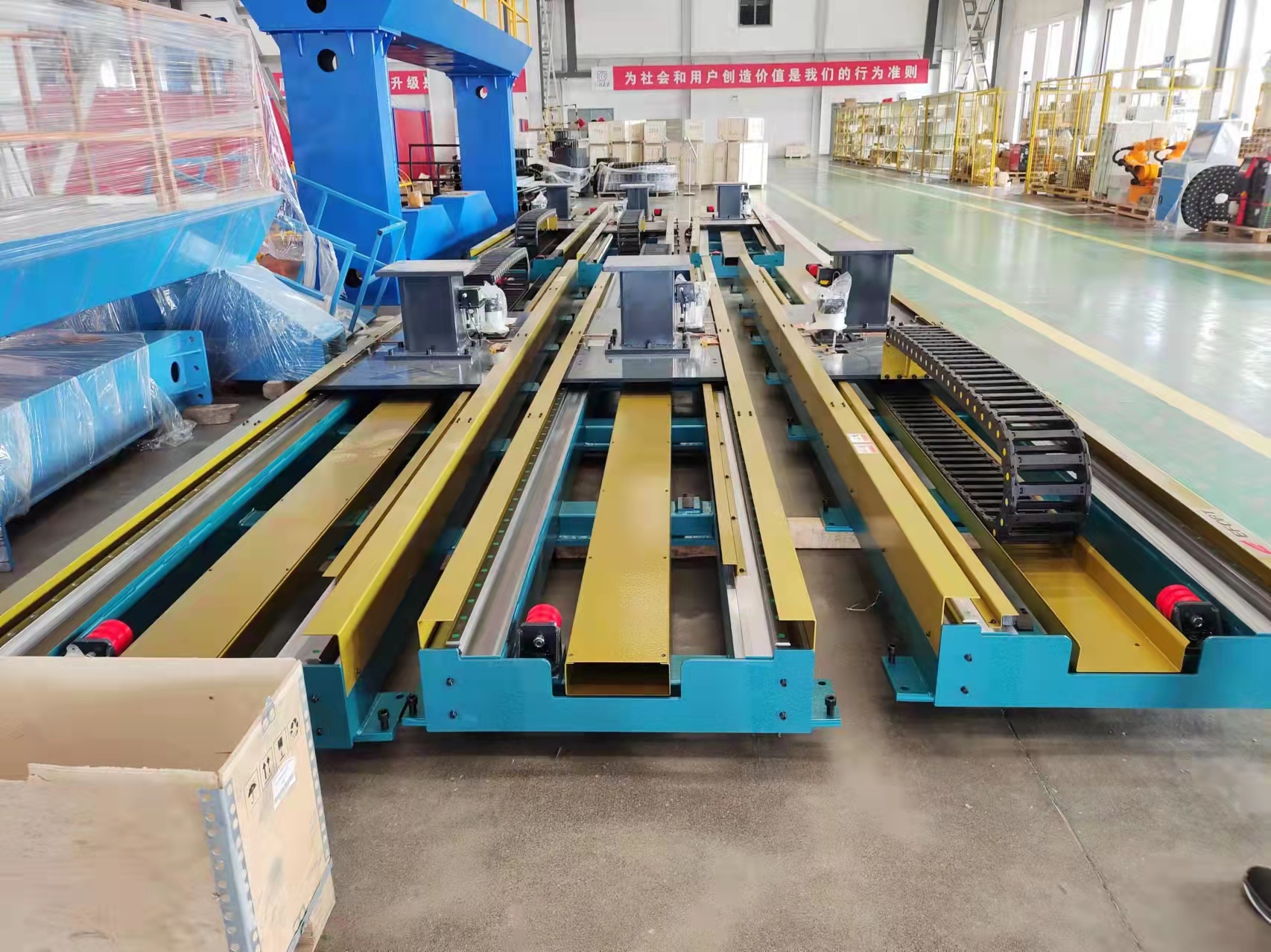 行走軌道可以配合國產(chǎn)機器人,也可以配進口機器人使用。如果咱們想要軌道跟機器人做直接聯(lián)動,也就是機器人在行走軌道上面邊走邊工作,那行走軌道里面裝的電機,是需要跟機器人同品牌同型號的,所以一般這個第七軸電機是需要跟機器人配套的,可以在購買機器人的時候跟機器人廠家來配。